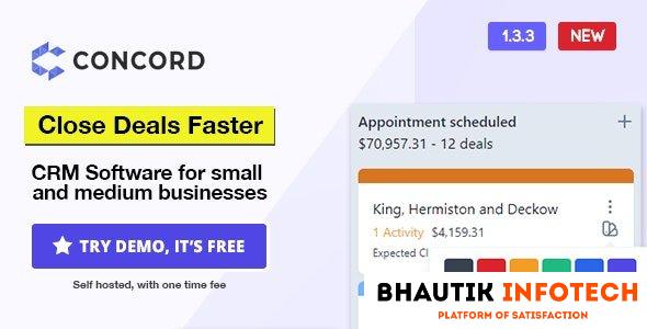 Concord is an affordable self-hosted CRM web-based application, with a one-time fee and can help your company to easily manage and organize deals/leads, contacts, and companies, and have a clear overview of the next actions that need to be taken to successfully close a sale.