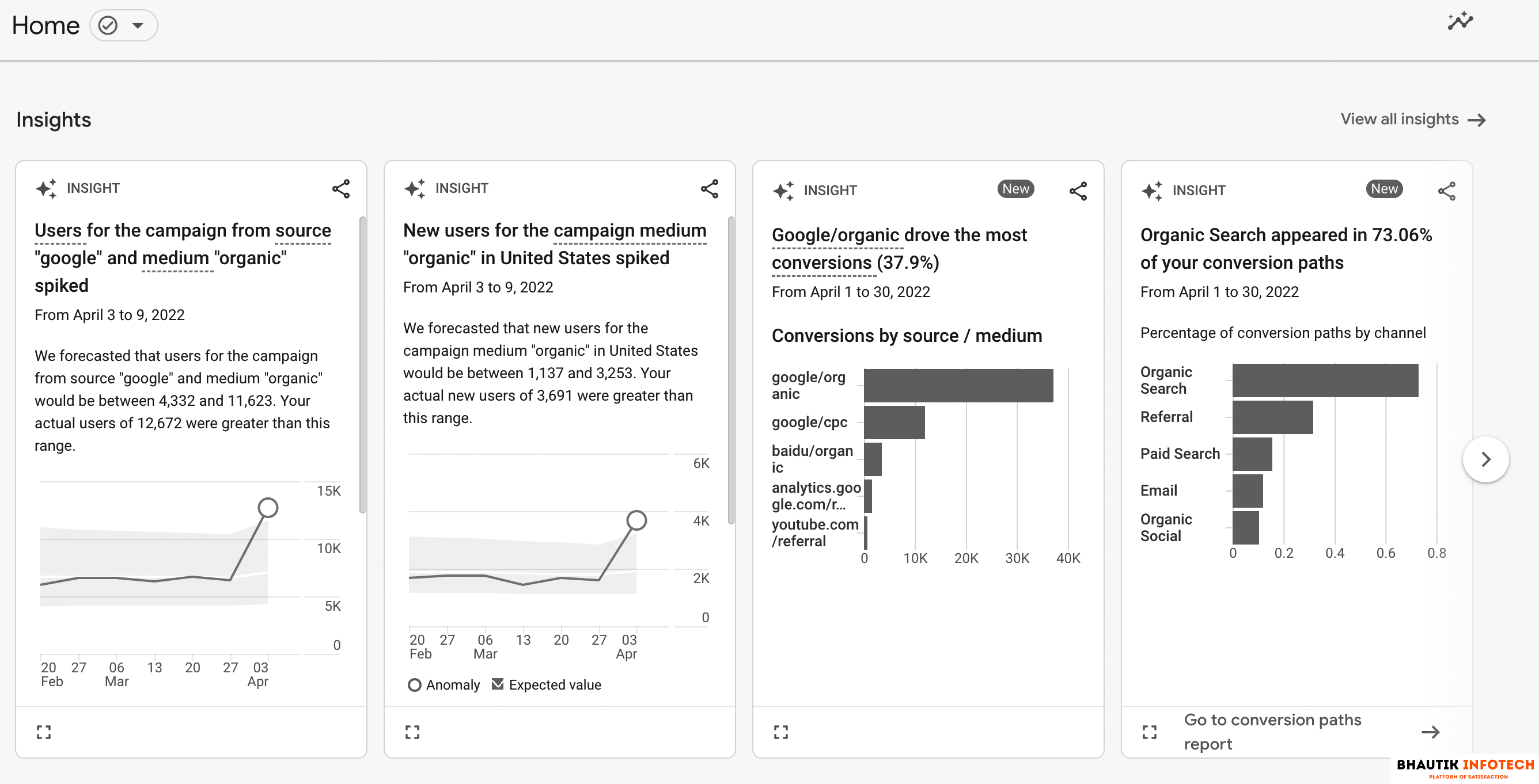 Google Analytics insights आपको वेबसाइट और ऐप के प्रदर्शन को समझने में मदद करते हैं। यह उपयोगकर्ता व्यवहार, ट्रैफ़िक स्रोतों और आपकी मार्केटिंग प्रयासों की प्रभावशीलता के बारे में जानकारी प्रदान करता है। यहाँ Google Analytics से प्राप्त किए जा सकने वाले प्रमुख insights का विवरण दिया गया है:
